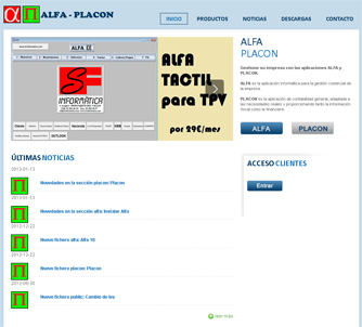 www.alfaplacon.com: Página web corporativa con noticias y descarga de contenido que podrán ser gestionadas por el usuario mediante un panel de administración.