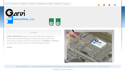 www.garvi.com: Página web en 4 idiomas con descarga de archivos PDF, formulario y galería de imágenes